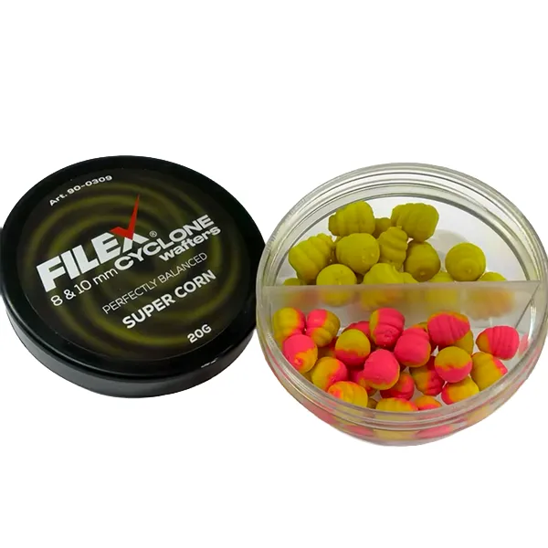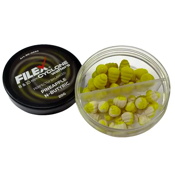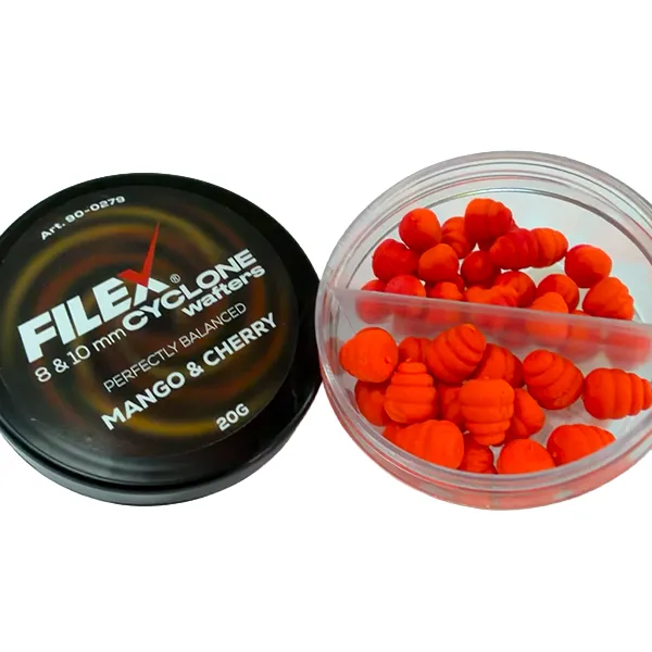 FILEX CYCLONE WAFTERS 8 & 10MM dostupni su u više aroma kao što su mango, kukuruz, karamel, malaga, ananas i jagoda, što ih čini izuzetno fleksibilnim izborom za sve situacije u feeder ribolovu.
