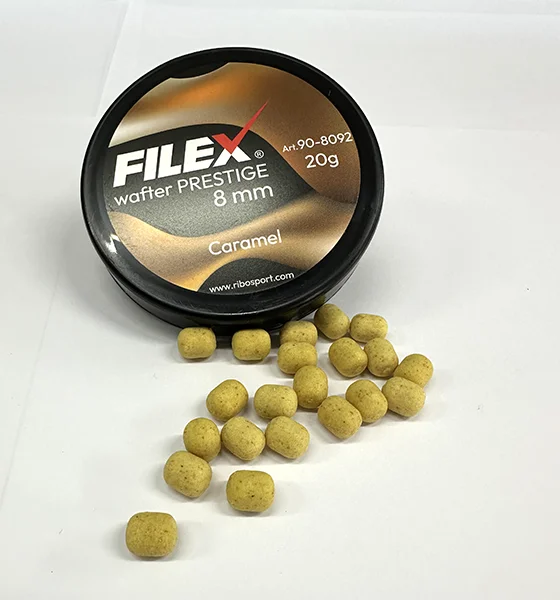 Filex Prestige Wafter Caramel pripada PRESTIGE seriji jednobojnih balansiranih mamaca, kreiranih da odgovore na sve zahteve modernog feeder i šaranskog ribolova. Ova varijanta sa bogatom aromom karamela pruža diskretnu, ali slatku i dugotrajnu privlačnost, idealnu za vode pod pritiskom ili kada riba traži nežnije arome.