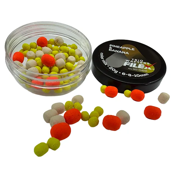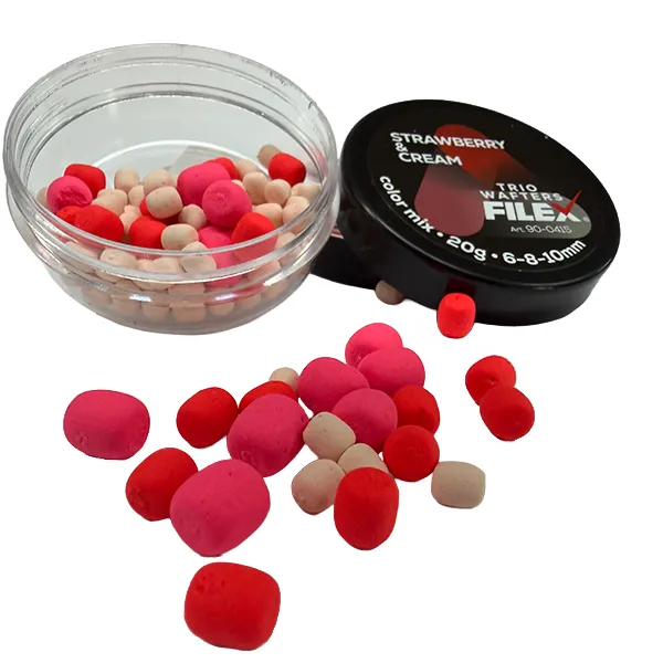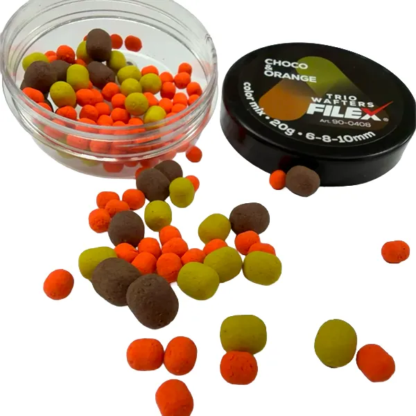 FILEX TRIO WAFTERS 6-8-10MM dostupni su u više aroma kao što su čokolada i pomorandža, jagoda i krem, ananas i banana, beli luk i đumbir, limun i med, kao i tigrov orah i kukuruz.